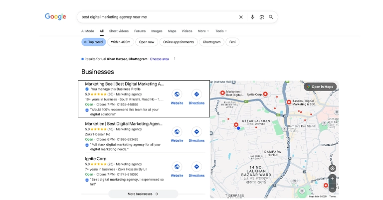 When people search for local services like “best marketing agency near me”.